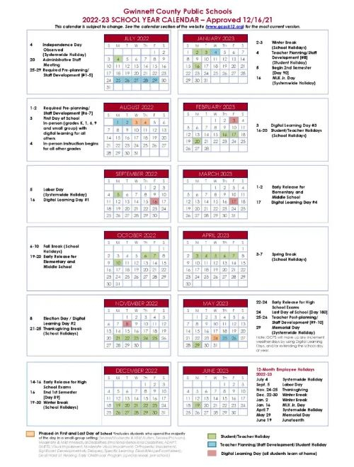Gwinnett County Public Schools Holiday Calendar 2022 2023