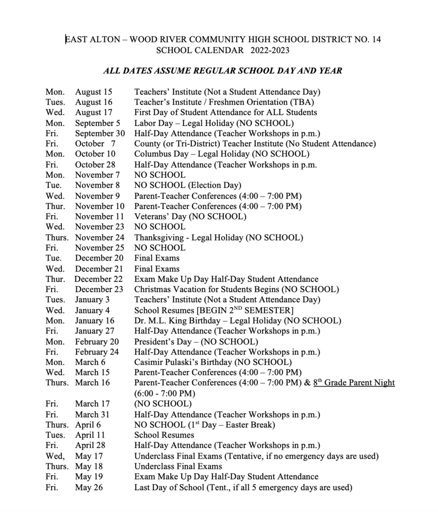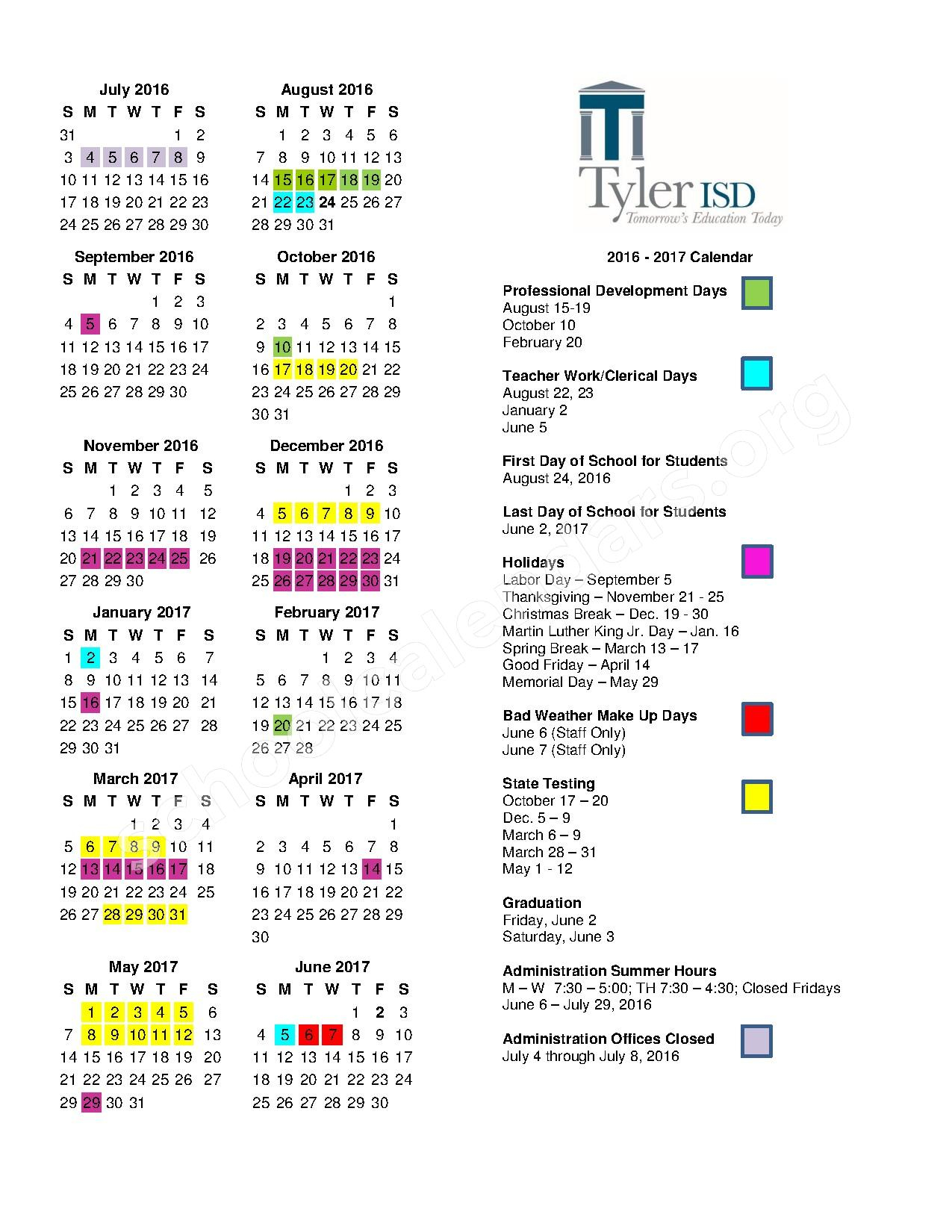 Tyler Independent School District Calendar
