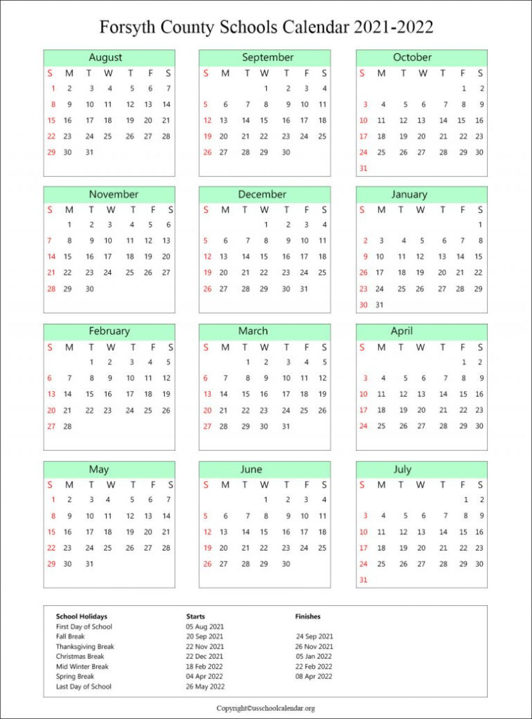 Forsyth County Schools Calendar 2022-21 – Read on if you’re wondering about the Cobb County School Calendar for the 2021-2022 school year. The latest university year will begin on August2 and 2021, and stops on Might 25, 2022. Listed below are important schedules to be aware of. Understand that the School season begins on the Monday and ends on a Wednesday. It’s Monday, but it will be in-person, if you’re wondering about the School day. You can check out the calendar listed below, and go through the dropdown arrow to find the one particular you want. Forsyth County Schools Calendar 2022-21.