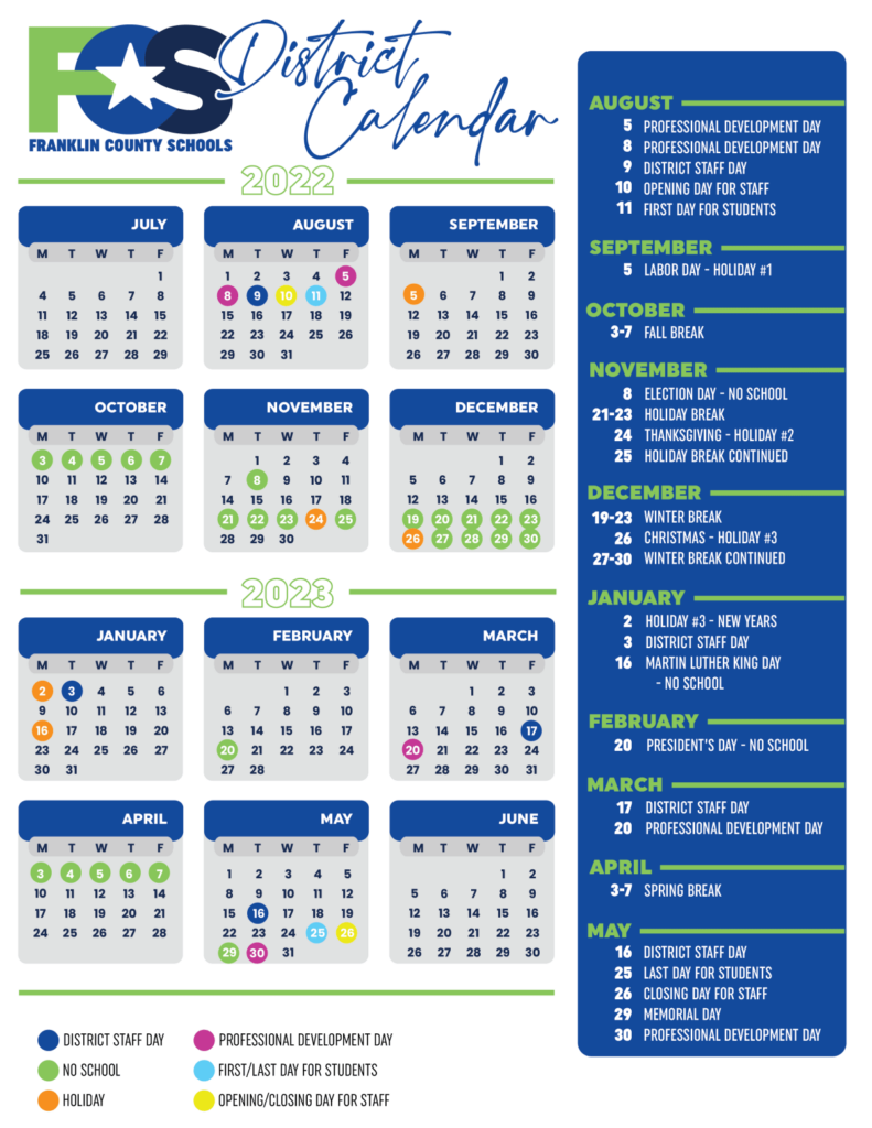 Franklin County Schools Calendar – Read on if you’re wondering about the Cobb County School Calendar for the 2021-2022 school year. The brand new college year commences on August2021 and 2, and stops on May possibly 25, 2022. Here are important schedules to remember. Understand that the institution season commences over a ends and Monday with a Wednesday. It’s Monday, but it will be in-person, if you’re wondering about the School day. You should check out the schedule under, and click on the dropdown arrow to choose the 1 that you want. Franklin County Schools Calendar.