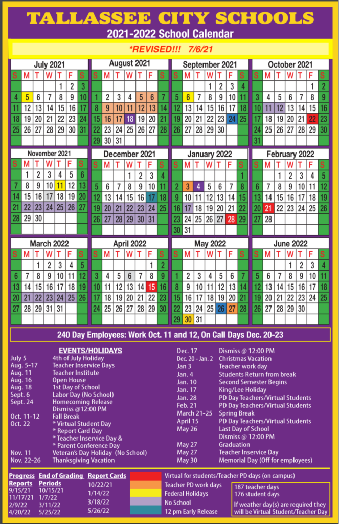 2021 2022 SCHOOL CALENDAR Tallassee Elementary School