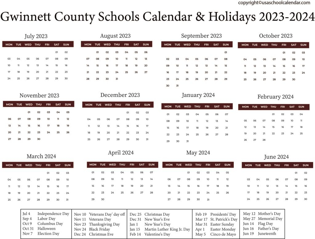 Gwinnett County Schools Calendar Holidays 2023 2024