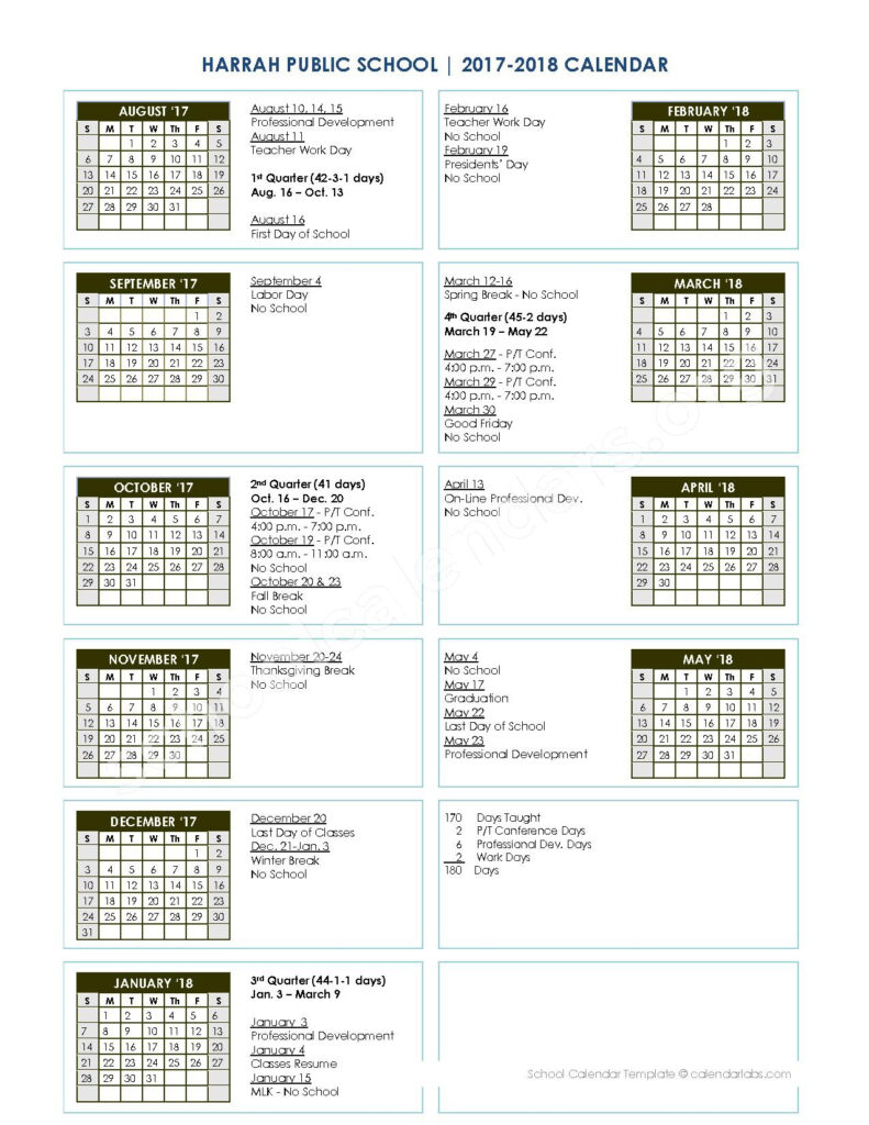 2017 2018 District Calendar Harrah Public Schools Oklahoma