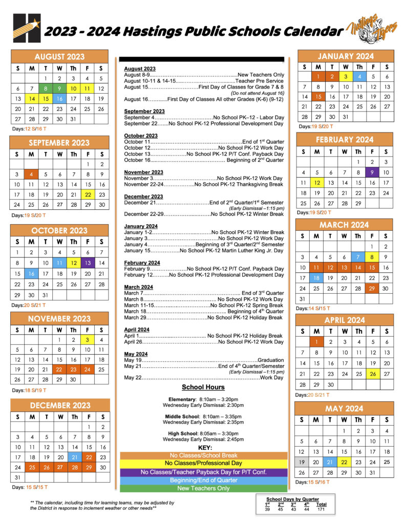 Hastings Public Schools Calendar – If you are looking for more information on the Public School Calendar, read on. This information will discuss substitute calendars, no-attendance times, and election times. You can even get a copy in the 2019-2020 school schedule, which is expected to be introduced in the drop. Shown below are among the most popular college calendars. If you have any questions, feel free to leave a comment below! We look ahead to listening to from you! Hastings Public Schools Calendar.
