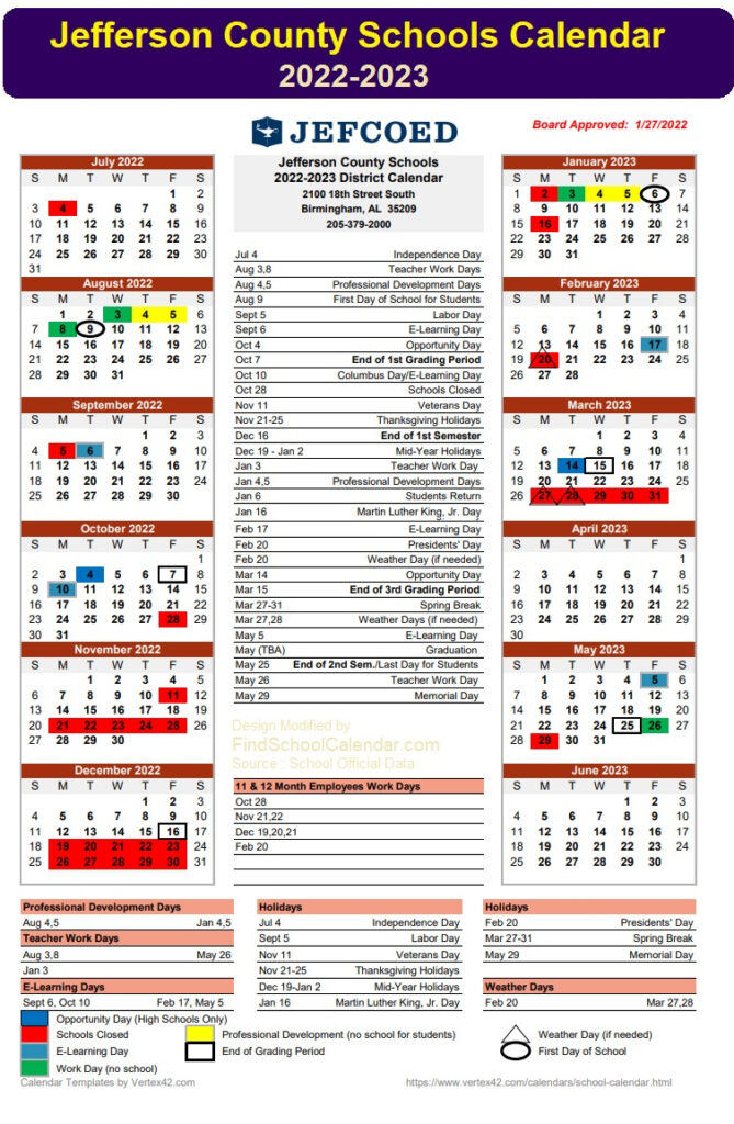 Jefferson County School Calendar 2022 – Read on if you’re wondering about the Cobb County School Calendar for the 2021-2022 school year. The brand new institution 12 months will begin on August2 and 2021, and comes to an end on May possibly 25, 2022. Here are significant days to bear in mind. Understand that the School year will begin on the Monday and ends over a Wednesday. It’s Monday, but it will be in-person, if you’re wondering about the School day. You should check out the schedule beneath, and select the dropdown arrow to find the 1 that you might want. Jefferson County School Calendar 2022.