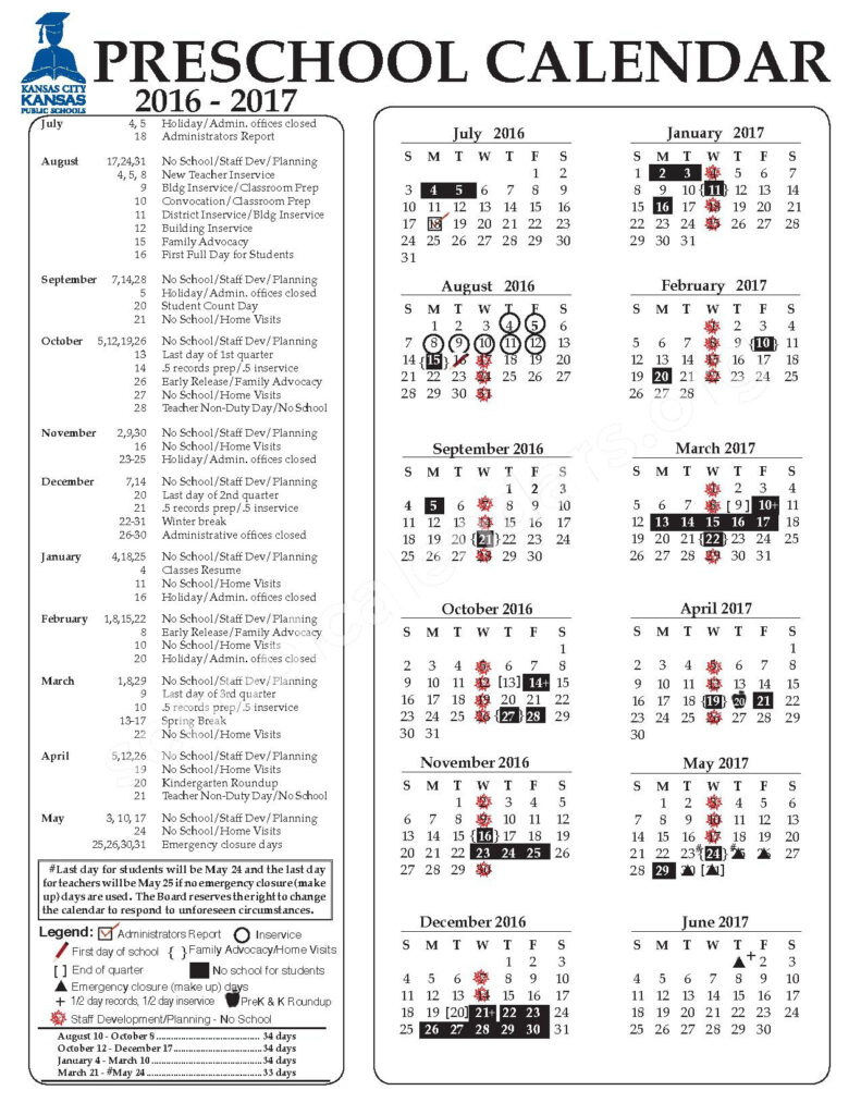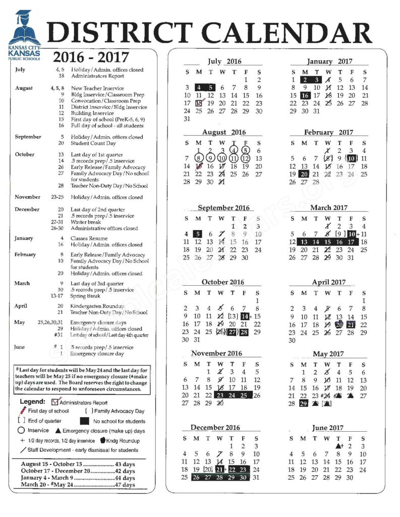 2016 2017 School Calendar Kansas City Public Schools Kansas City MO