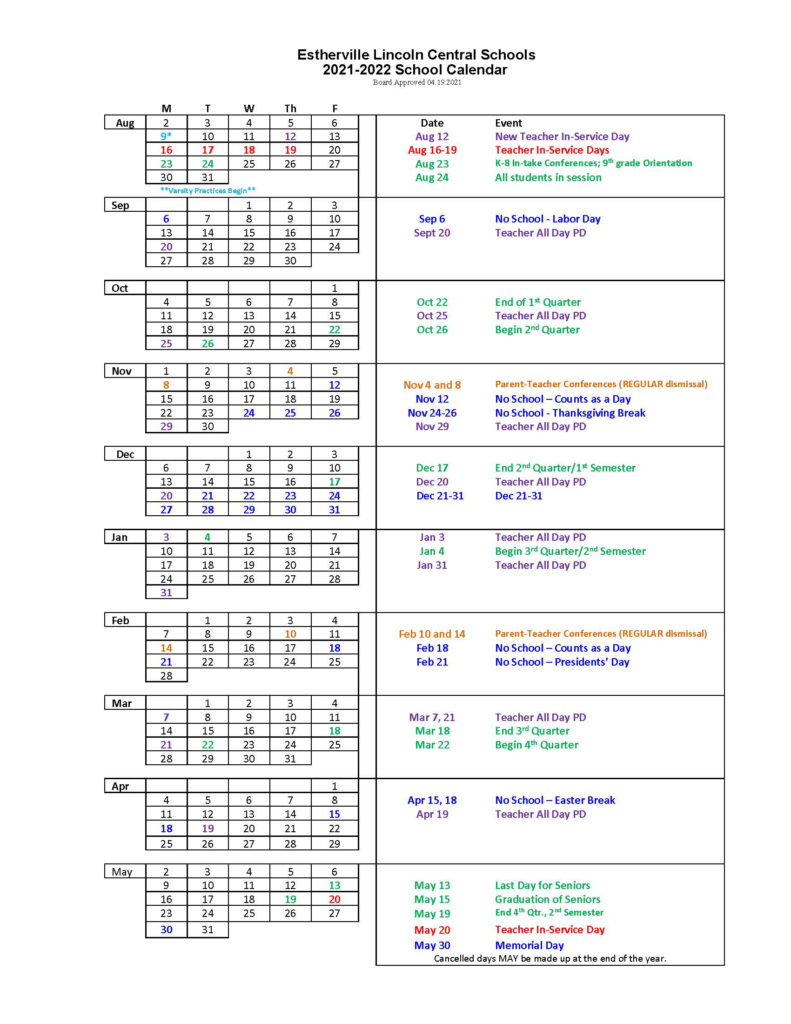 Lincoln Elementary School Calendar 2022 – A child’s schooling starts off with an Basic College Calendar. Also district-wide activities, even though this calendar not only details events and days of the week. You may also modify this work schedule for your child’s particular needs. This post will present you with some guidelines on how to use this work schedule in your favor. Right here are among the most popular attributes of an Elementary School Schedule. These are: The ability to personalize a schedule, district-broad situations, very early release days, plus more. Lincoln Elementary School Calendar 2022.