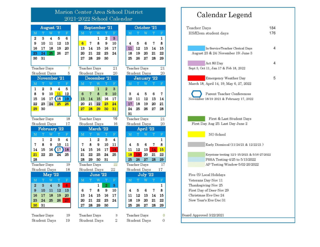 Gallery of Marion Center School District Calendar