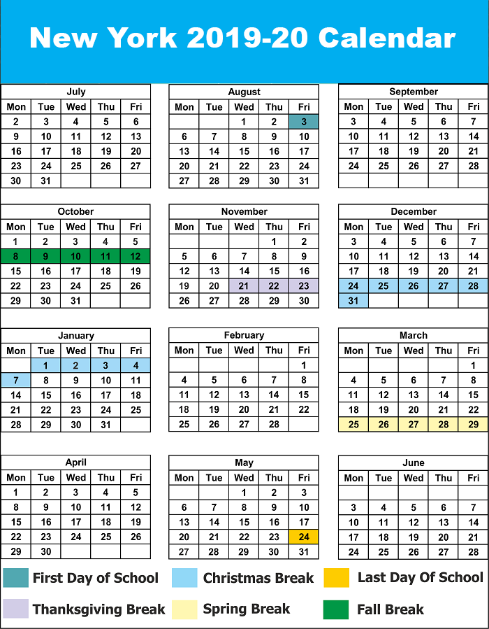 NYC NEW YORK CITY School Calendar 2019 20 Best Printable Calendar