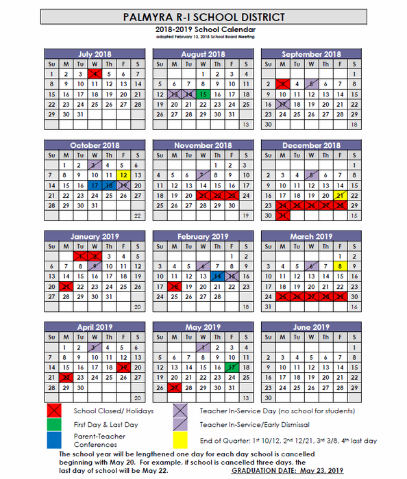2019 2020 Palmyra R 1 School District Calendar Palmyra Elementary