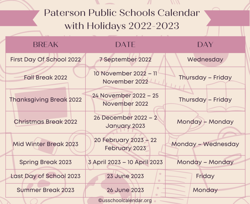 Paterson Public Schools Calendar 2022 US School Calendar