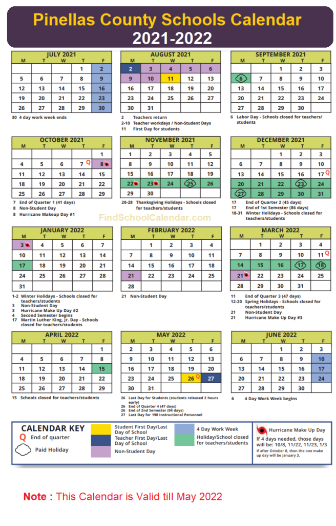 Pinellas County Schools Calendar 2021 2022 List Of Holidays