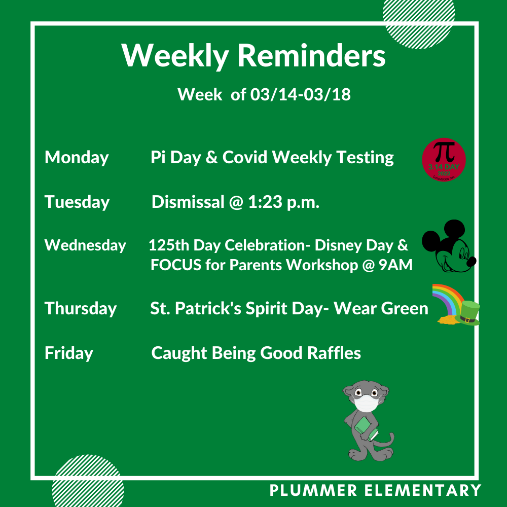 Weekly Reminders Recordatorios Semanales Plummer Elementary