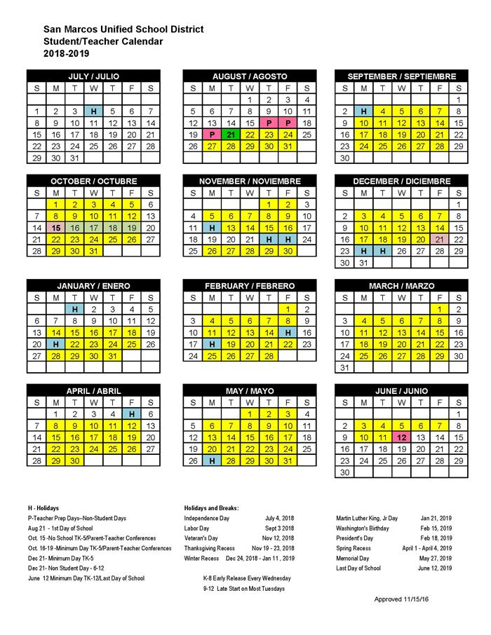 San Marcos Elementary School Calendar – A child’s education and learning starts off with an Basic Institution Calendar. This calendar not only details events and days of the week, but also district-wide activities. You can even customize this work schedule for your child’s particular needs. This information will give you some easy methods to utilize this schedule in your favor. Here are the most in-demand attributes of an Primary College Work schedule. These are: The cabability to personalize a schedule, district-wide occasions, earlier release time, plus more. San Marcos Elementary School Calendar.