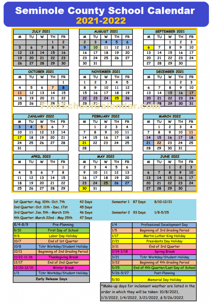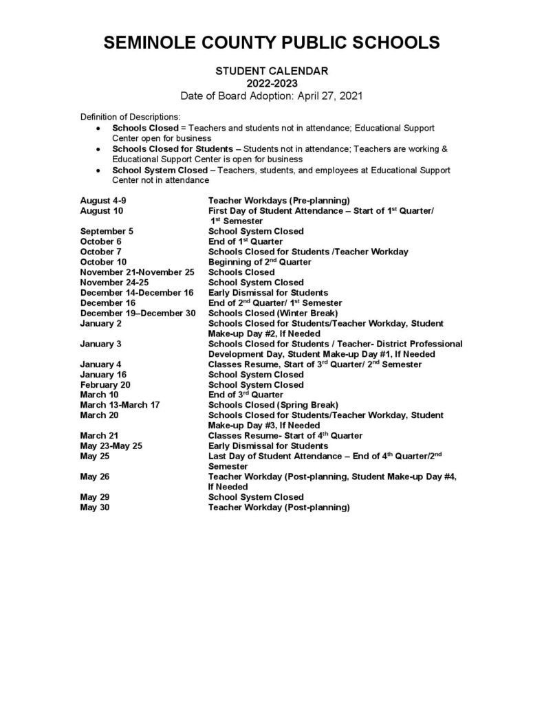 Gallery of Seminole County School Calendar 2022