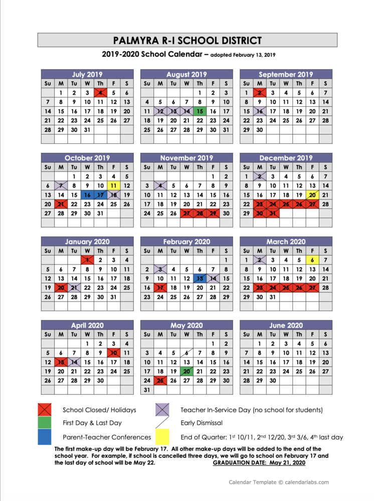 2019 2020 Palmyra R 1 School District Calendar Palmyra Elementary