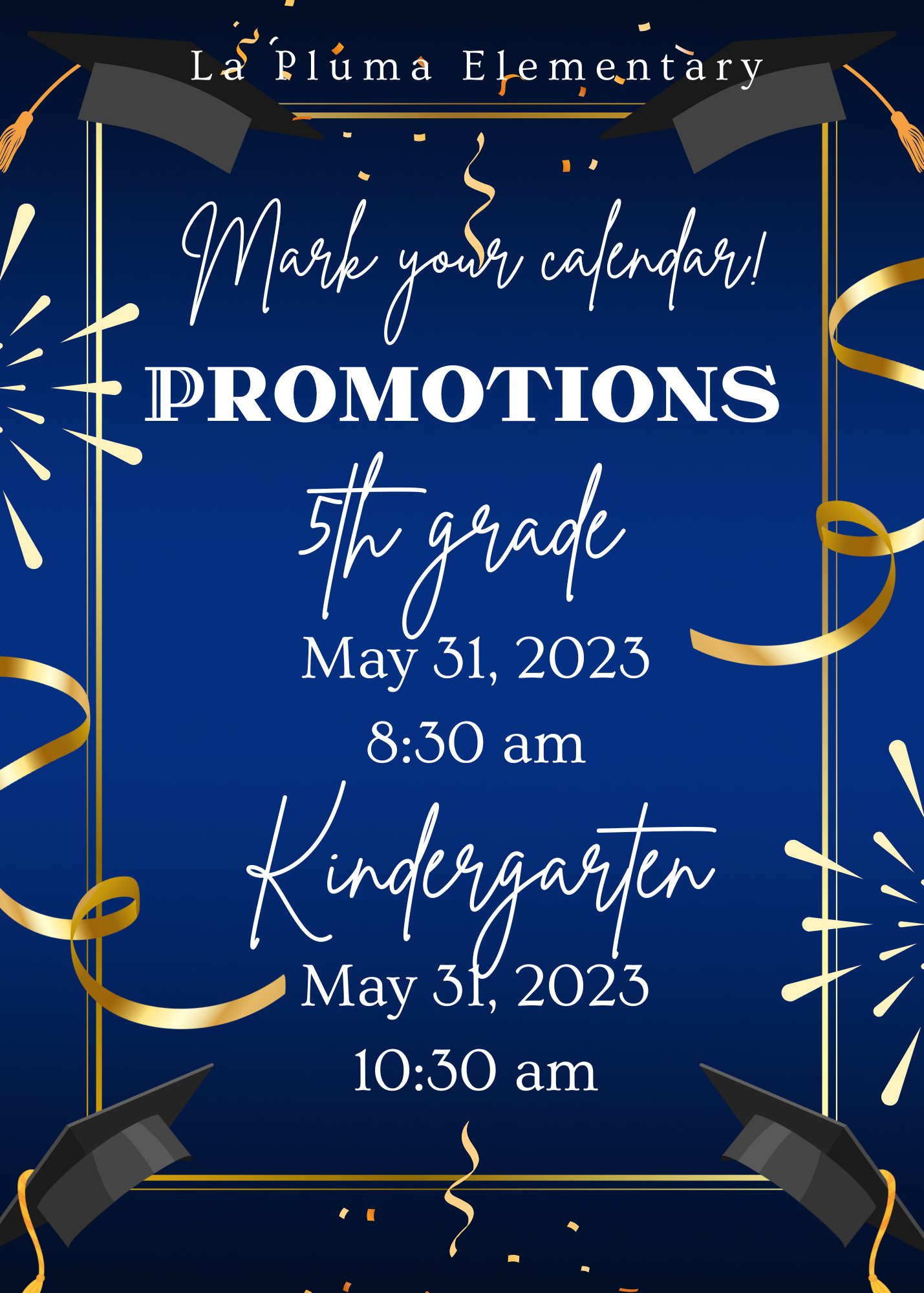 La Pluma Elementary School Calendar