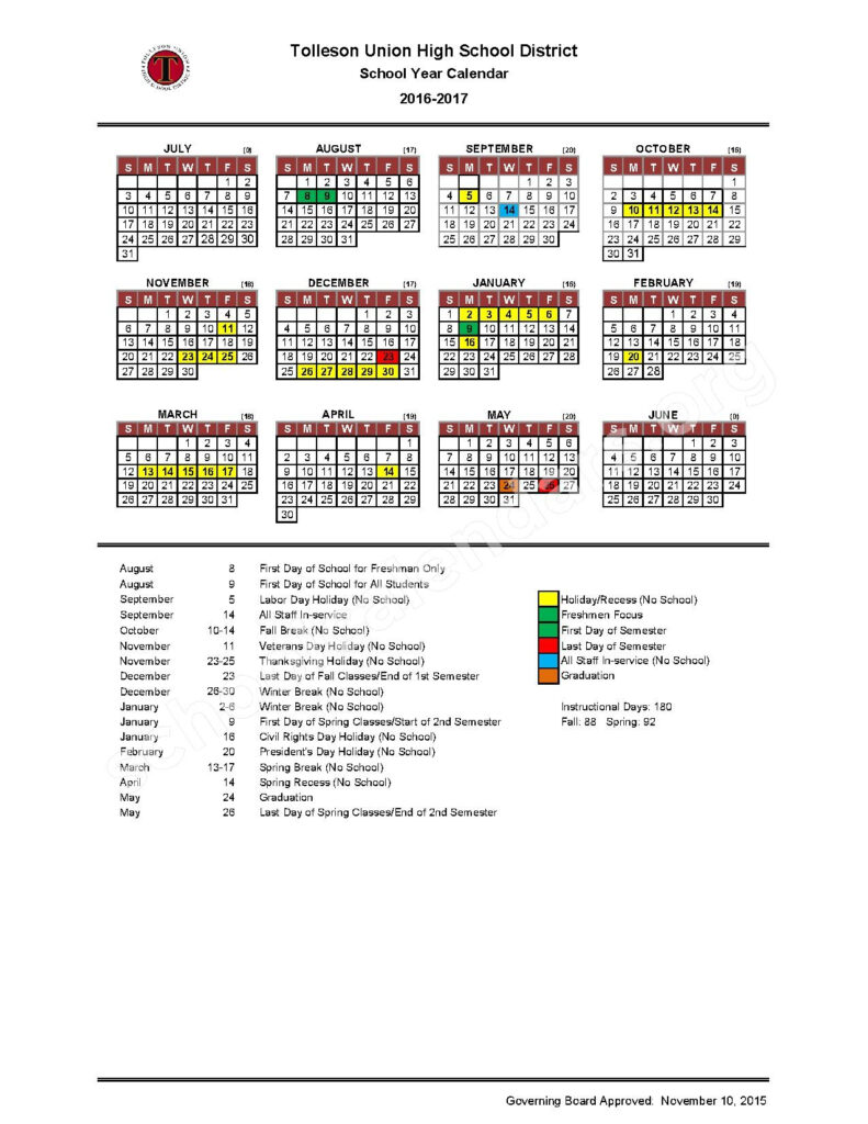 2016 2017 District Calendar Tolleson Union High School Tolleson AZ