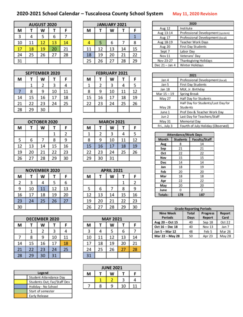Tuscaloosa County School Calendar 2022-21 – If you’re wondering about the Cobb County School Calendar for the 2021-2022 school year, read on. The latest university calendar year begins on August2021 and 2, and finishes on May possibly 25, 2022. Here are crucial times to keep in mind. Understand that the School calendar year commences on the ends and Monday with a Wednesday. If you’re wondering about the School day, it’s Monday, but it will be in-person. You can check out the calendar under, and select the dropdown arrow to find the 1 you want. Tuscaloosa County School Calendar 2022-21.