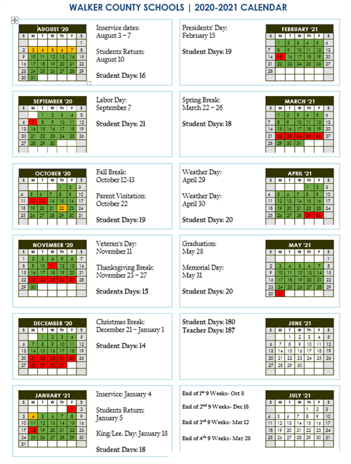 Walker County Schools Calendar – Read on if you’re wondering about the Cobb County School Calendar for the 2021-2022 school year. The brand new school season begins on August2 and 2021, and comes to an end on May possibly 25, 2022. Listed below are significant dates to bear in mind. Do not forget that the college year will begin on the Monday and ends on a Wednesday. If you’re wondering about the School day, it’s Monday, but it will be in-person. You can check out the work schedule under, and click the dropdown arrow to select the one particular that you would like. Walker County Schools Calendar.