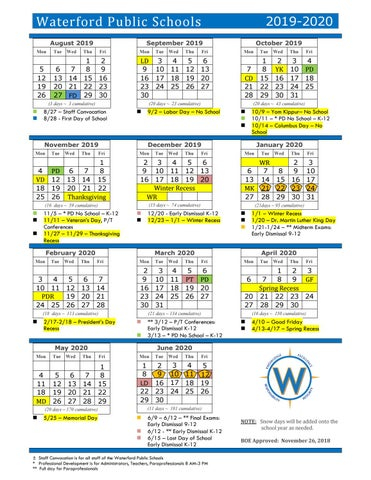 Waterford Public Schools Calendar 2019 2020 By Waterford Public Schools