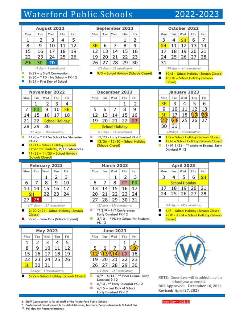 Waterford Public Schools Calendar 2022 2023 By Waterford Public Schools