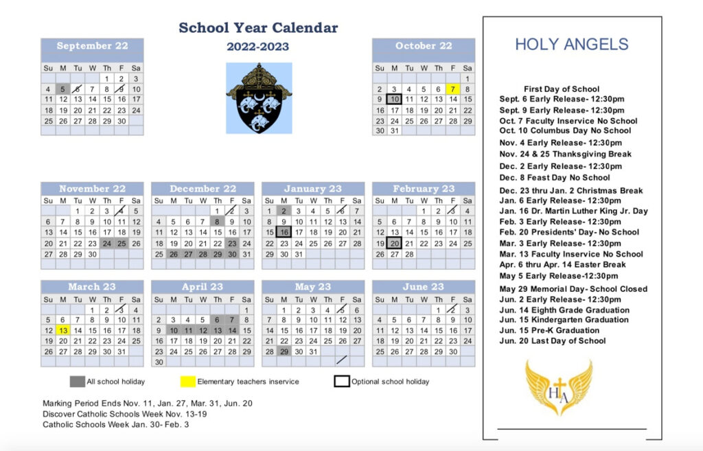 2022 2023 School Calendar And Important Dates Holy Angels Catholic